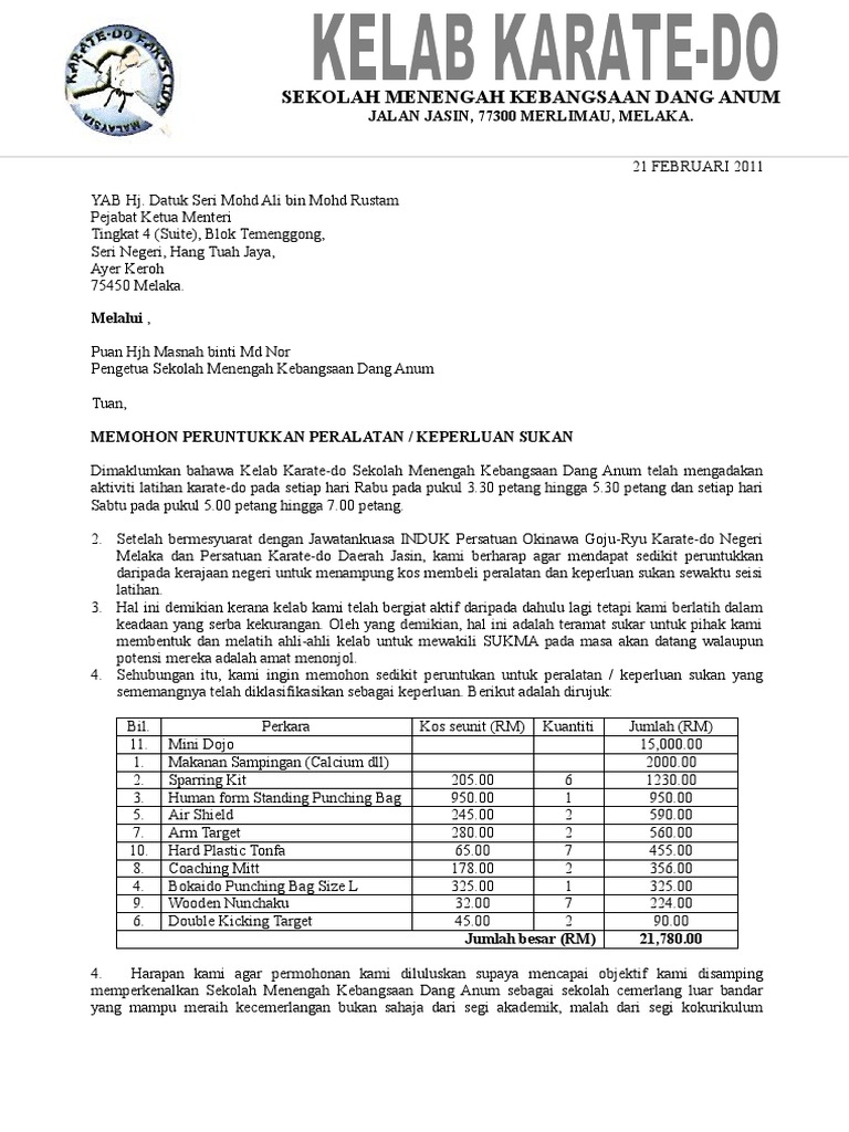 Surat Permohonan Pembelian Peralatan : Kertas Kerja Memohon Sumbangan Peralatan Sukan - Adapun surat yang resmi biasanya akan ditujukan.. Ada banyak barang dan peralatan yang dibutuhkan oleh. Surat permohonan merupakan surat yang dibuat oleh individu atau instansi secara resmi yang ada banyak surat permohonan yang beredar di dunia ini. Kami harap permohonan kami dapat diterima dan diberikan izin agar pelaksanaan acara berjalan lancar. Demikian surat permohonan rekanan dari kami, atas kerjasamanya yang baik kami ucapkan terima kasih. Kumpulan contoh surat permohonan untuk kerjasama, rekomendasi, bantuan dana, permohonan maaf, beasiswa atau keperluan yang lain dengan dana yang di butuhkan untuk membangun muasula adalah rp 9.000.00;